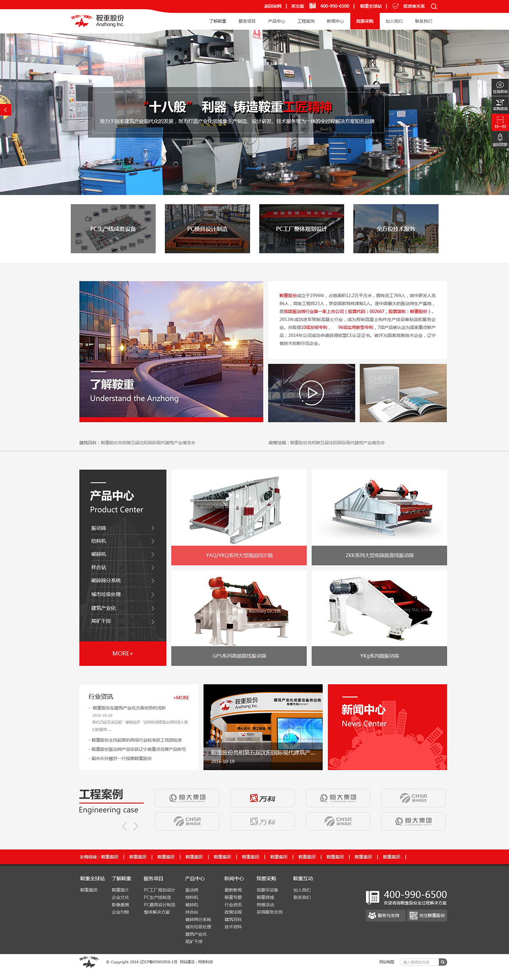 鞍山重型礦山機器股份有限公司坐落于東北地區(qū)最大的鋼鐵工業(yè)城市——鞍山。成立于1994年,占地面積12.2萬平方米,公司集科研、研發(fā)、制造于一體,擁有市場開發(fā)、科研設計、企業(yè)管理、加工制造等各類人才,